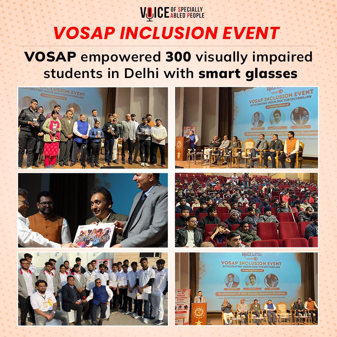 VOSAP ने दिल्ली-एनसीआर में AI वाले स्मार्ट चश्मों से 300 दृष्टिबाधित बच्चों की जिंदगी बदल दी है। ये स्मार्ट चश्मे आस-पास की चीजें स्कैन करते हैं। पढ़ाई, रोजमर्रा के काम और दूसरी जानकारी देते हैं। इन बच्चों को अब खुद काम करने में आसानी होगी और उनके लिए नए मौके खुलेंगे। इस मौके पर प्रणव देसाई (VOSAP के संस्थापक), राजेश अग्रवाल (भारत सरकार में DePWD के सचिव), सुरेंद्र नाथ त्रिपाठी (IIPA के डायरेक्टर जनरल) के साथ श्रीधर, दिलीप सिंह, विजय राय और डॉ. उत्तम ओझा जैसे दूसरे महानुभाव भी मौजूद थे।
