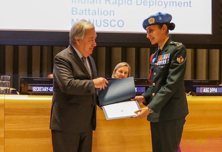 मेजर राधिका सेन को यूएन महासचिव एंतोनियो गुतारेस ने पुरस्कृत किया था। / X @UNPeacekeeping
