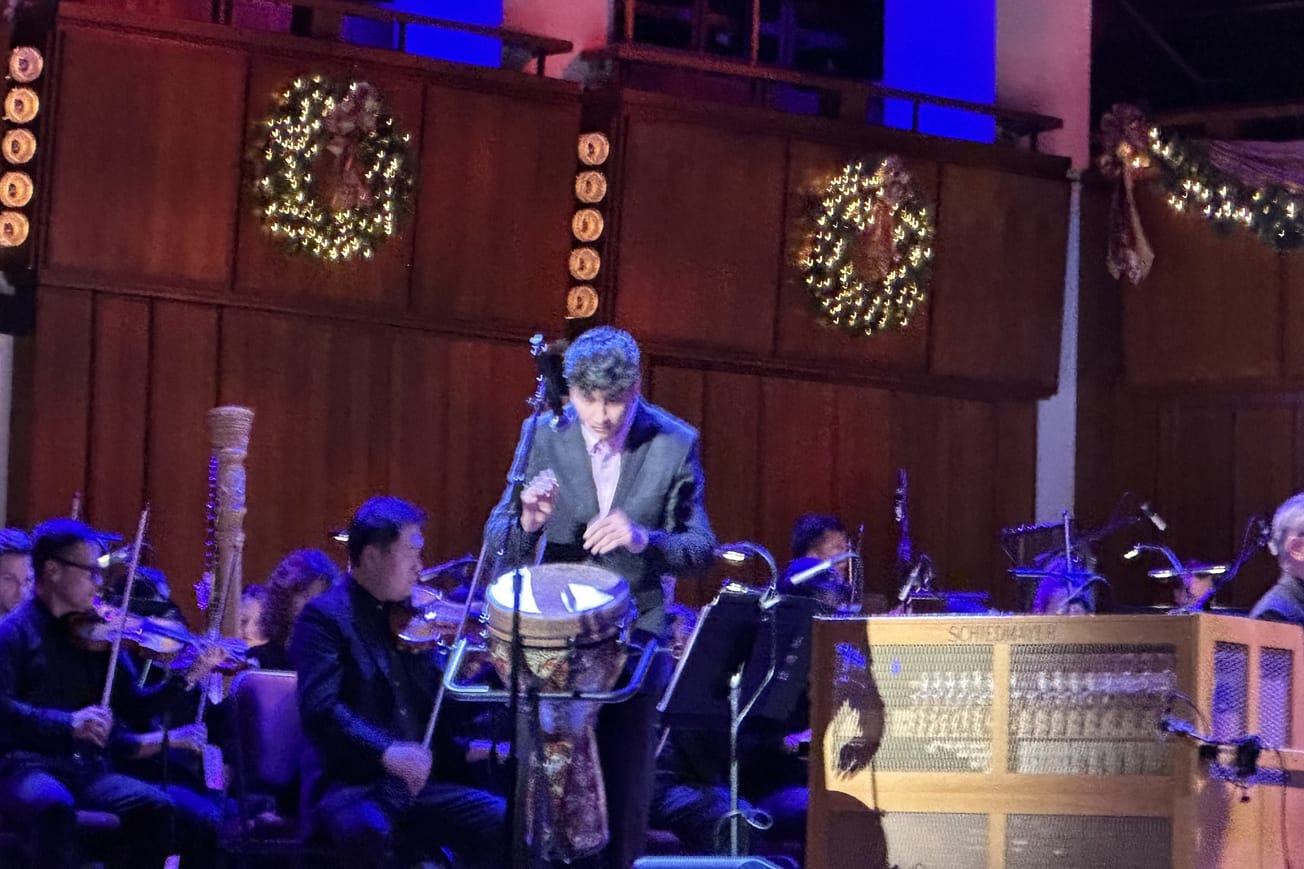 'लिटिल ड्रमर बॉय' की सुंदर प्रस्तुति के दौरान कैनेडी सेंटर कॉन्सर्ट में ऋषभ जैन। Image : NIA /