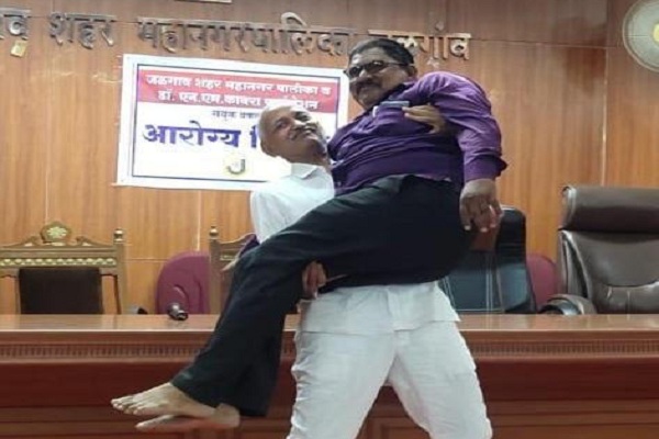 अपने से भारी व्यक्ति को उठाये डॉ. काबरा / Dr Mahendra Kabra