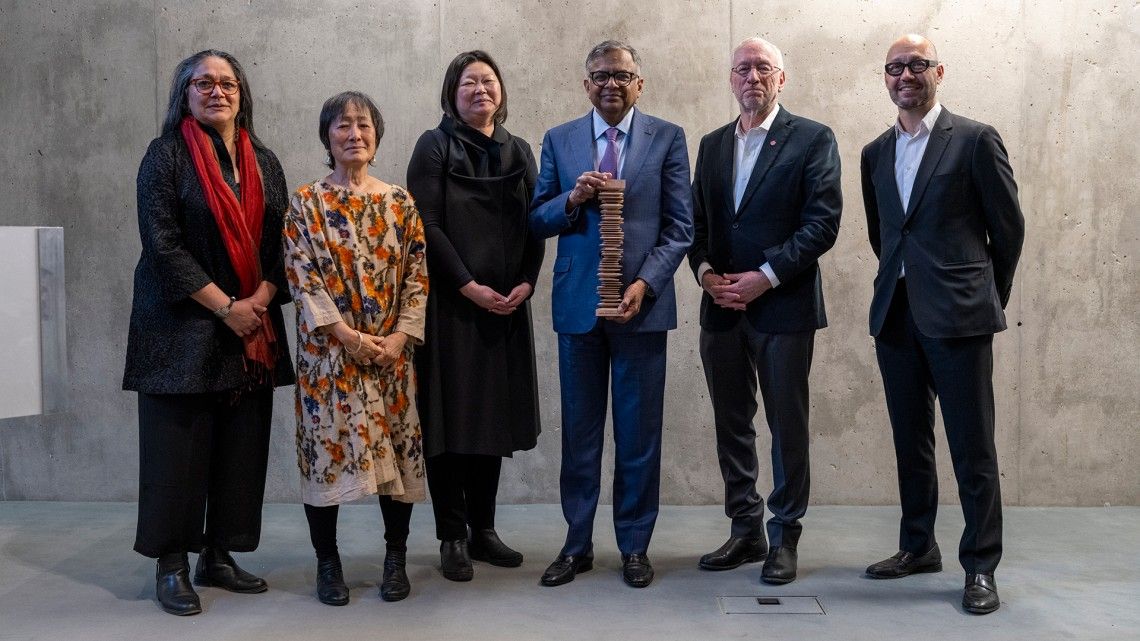समारोह में (बाएं से) सिटी एंड रीजनल प्लानिंग की प्रोफेसर और एकेडमिक अफेयर्स की सीनियर एसोसिएट डीन नीमा कुड़वा, आर्किटेक्ट व AIA सदस्य, बिली त्सिएन, AAP की गेल एंड इरा ड्रुकीयर डीन जे. मीजिन यून, टाटा संस के चेयरमैन एन. चंद्रशेखरन, कॉर्नेल यूनिवर्सिटी के प्रेसिडेंट माइकल आई. कोटलिकोफ और आर्किटेक्चर विभाग के प्रोफेसर चेयरमैन होसे कास्टिलो। Image : Anson Wigner / AAP / X @ Ratan Tata