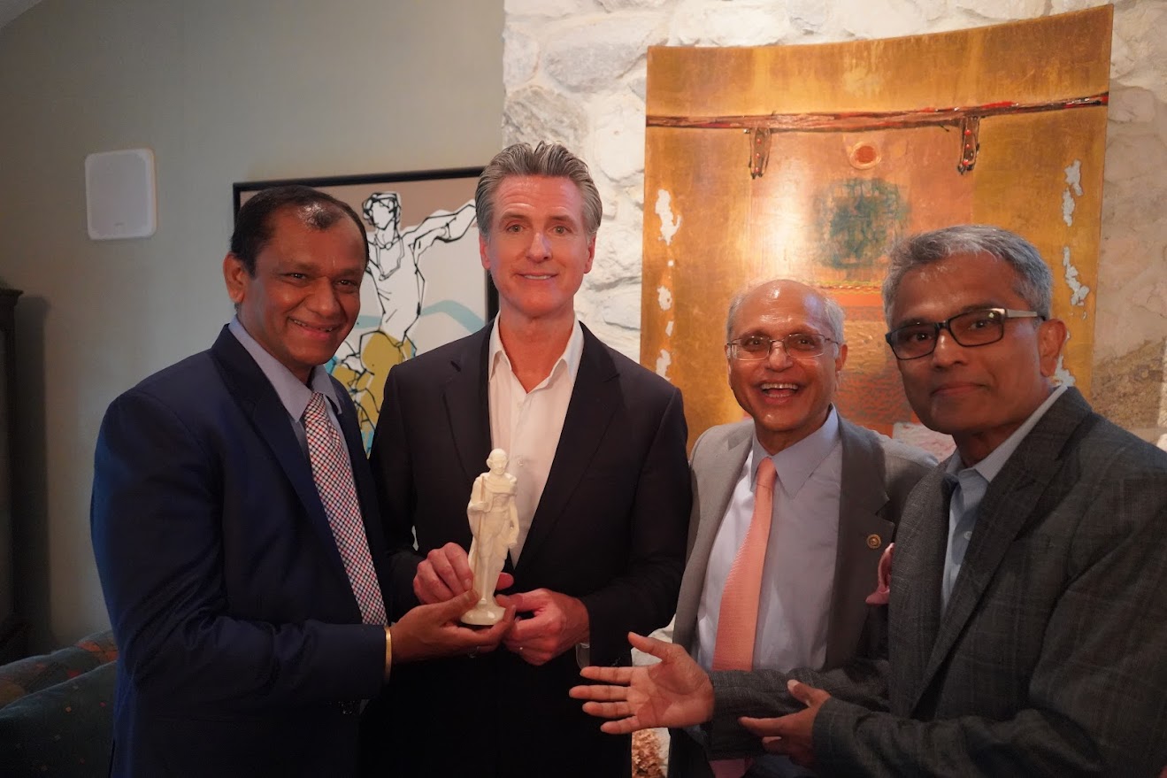 USISC के अध्यक्ष रमेश विश्वनाथ कपूर ने कैलिफोर्निया के गवर्नर गेविन न्यूजम को सम्मानित किया। / Courtesy Photo