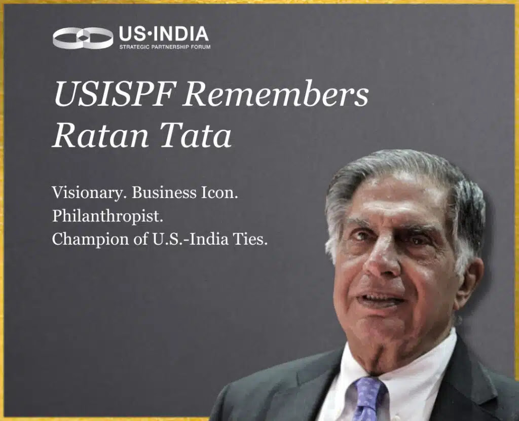 US-India स्ट्रेटेजिक पार्टनरशिप फोरम टाटा ग्रुप और लाखों लोगों को जो उनके जीवन और कार्य से प्रेरित थे, अपनी गहरी संवेदनाएं पेश करता है। रतन टाटा का निधन न केवल भारत के लिए बल्कि विश्व समुदाय के लिए भी एक नुकसान है, जिसे उनकी उदारता, ज्ञान और नेतृत्व से लाभ हुआ।