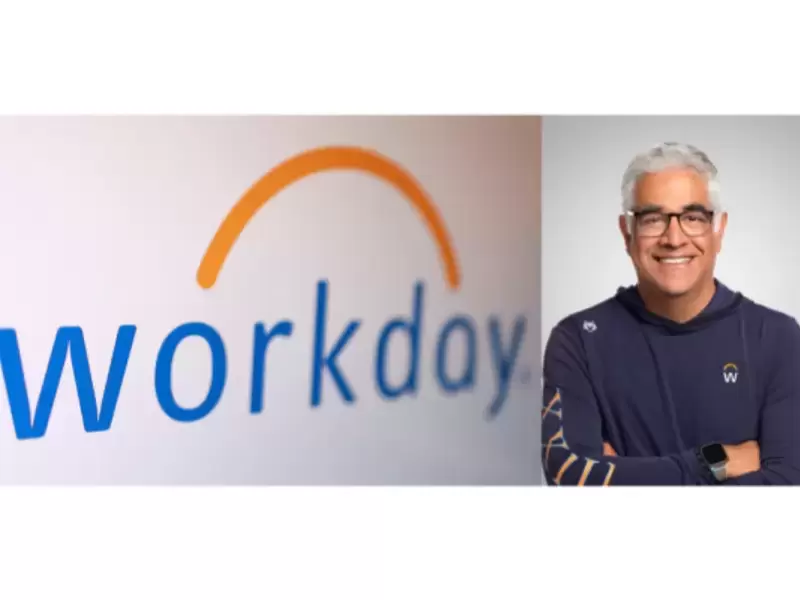 वर्कडे कंपनी का लोगो और साथ में सीईओ अनील भूसरी / Reuters/Workday
