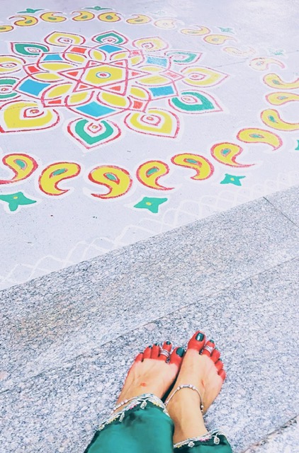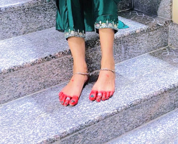 मैं हंस पड़ी। कोई पुरुष होता तो वह सवाल कर बैठता मेरी हंसी पर। लेकिन वह नारी थी। स्त्री मन को समझना जानती थी शायद इसलिए उसने कुछ पूछा नहीं। मुस्कुरा कर कहा, ऑर्टिस्ट और उसके ख्वाब। मैंने कहा- आप एक काम करें, तस्वीर ले लें। वापस जाकर मन में फिर भी इच्छा हुई कि इन पैरों की तस्वीर बनानी है तो देख कर बना सकती हैं। वैसे इनमें कुछ अलग या ख़ास नहीं। भारत में महिलाओं का इस तरह पैरों पर रंग लगाना, गहने-ज़ेवर पहना आम है। ख़ास कर त्योहारों पर तो और। यह एक आम भारतीय महिला के पैर हैं और आपकी सुंदर कलात्मक दृष्टि। वह खुश हो गई। उसने एक-दो तस्वीरें ली और विदा के साथ मैं चल पड़ी, ख़ाली पैर अपनी यात्रा पर…...