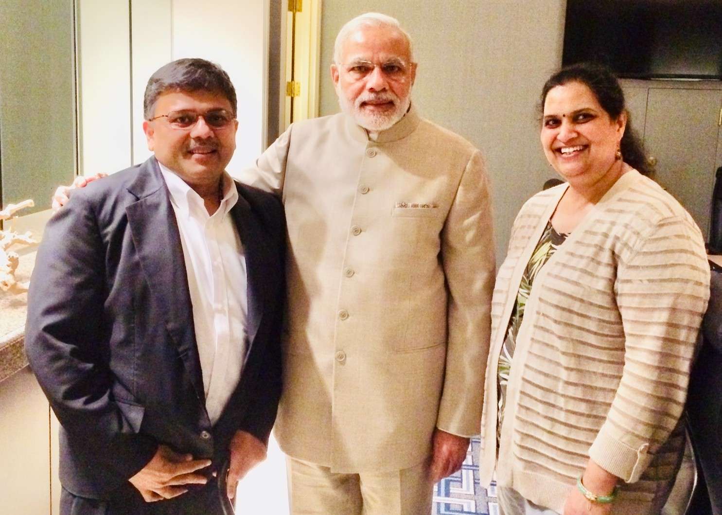 image provided / सैन फ्रांसिस्को में पीएम मोदी के साथ प्रणव देसाई और उनकी पत्नी ऊषा, सितंबर 2015