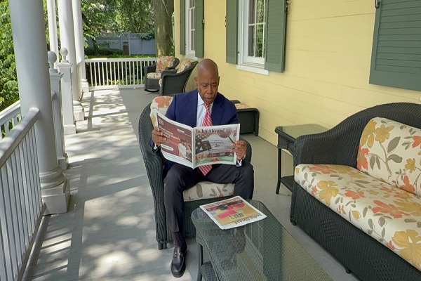 अपने व्यस्त समय के बीच न्यू इंडिया अब्रॉड पढ़ते एडम्स। / Lalit K Jha