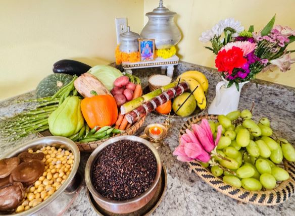 दावत तैयार होने पर पहले देवताओं को, फिर द्वार पर रखकर फूलों व दीपक के साथ अर्पण किया जाता है। केले के पत्तों में सभी व्यंजनों के नमूने रखे जाते हैं, ताकि देवता और पूर्वज घर की रक्षा करें और दुर्भाग्य को हर लें।