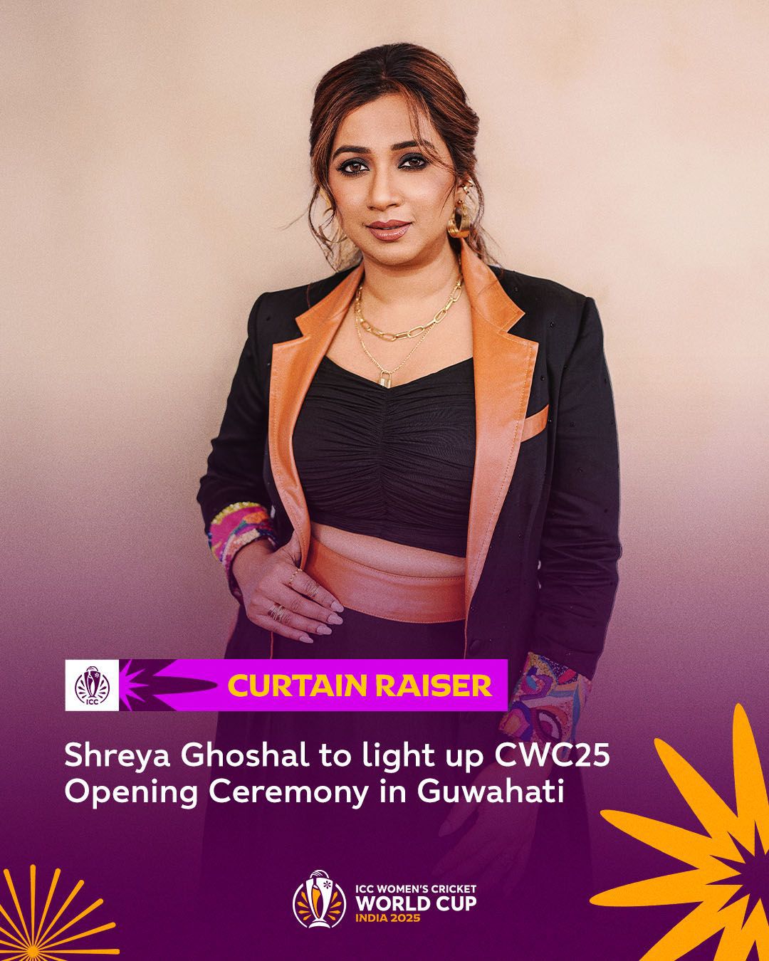 India’s musical pride @shreyaghoshal will get Guwahati grooving at the @cricketworldcup Grand Opening Ceremony ahead of the tournament opener between @BCCI and @OfficialSLC on September 30