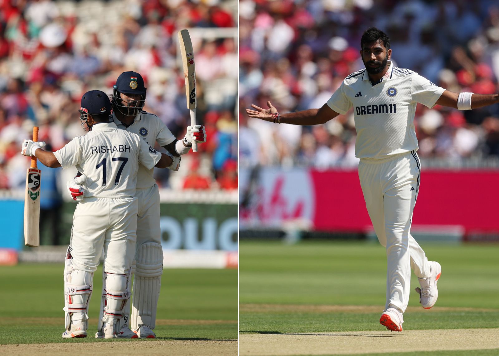 बांए तरफ ऋषभ पंत और केएल राहुल, दाएं ओर जसप्रीत बुमराह। / x/@BCCI
