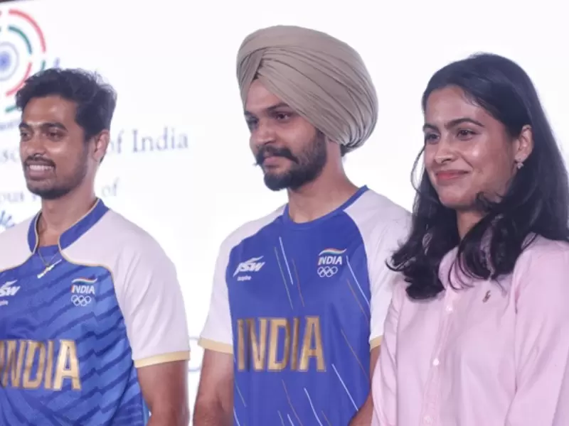नई दिल्ली: भारतीय ओलंपिक शूटिंग टीम के सम्मान समारोह के दौरान मनु भाकर (व्यक्तिगत और टीम कांस्य पदक विजेता), स्वप्निल कुसाले (व्यक्तिगत कांस्य पदक विजेता) और सरबजोत सिंह (टीम कांस्य पदक विजेता) को 30 अगस्त, 2024, शुक्रवार को नई दिल्ली में भारतीय राष्ट्रीय राइफल संघ द्वारा सम्मानित किया गया। / IANS/Wasim Sarvar