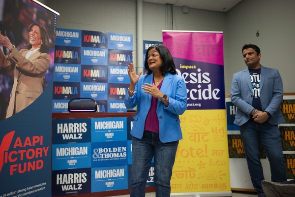 हैरिस के समर्थन में कैनवस लॉन्च के अवसर पर भारतीय-अमेरिका कांग्रेसी प्रमिला जयपाल / AAPI Victory Fund