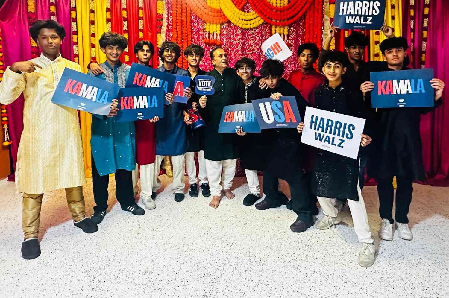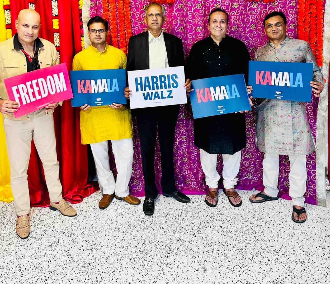 उत्सव में कम्युनिटी लीडर अजय भुटोरिया समेत कई लोगों ने हैरिस के प्रति अपना समर्थन दर्शाया। /
