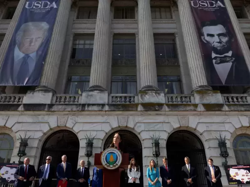अमेरिकी कृषि सचिव ब्रुक रोलिन्स वॉशिंगटन डी.सी. में यूएसडीए मुख्यालय के बाहर प्रेस कॉन्फ्रेंस के दौरान / REUTERS/Umit Bektas