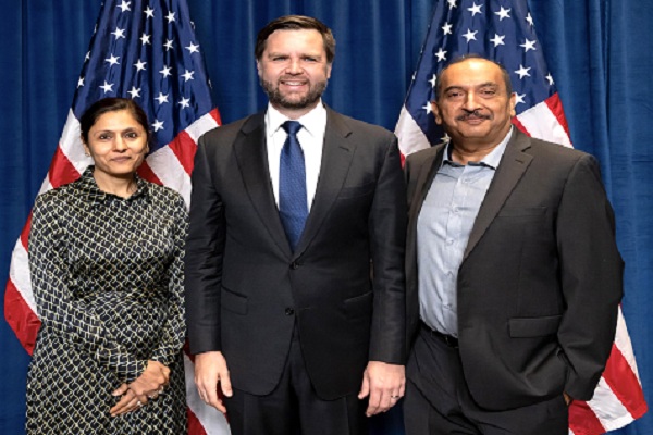 भारतीय मूल की अपनी पत्नी उषा और जितेन अग्रवाल के साथ जेडी वेंस (बीच में) / Jiten Agarwal