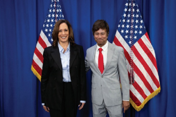 अमेरिका की उप राष्ट्रपति और इस बार शीर्ष पद के लिए डेमोक्रेट उम्मीदवार कमला हैरिस के साथ श्री थानेदार। / NIA/File