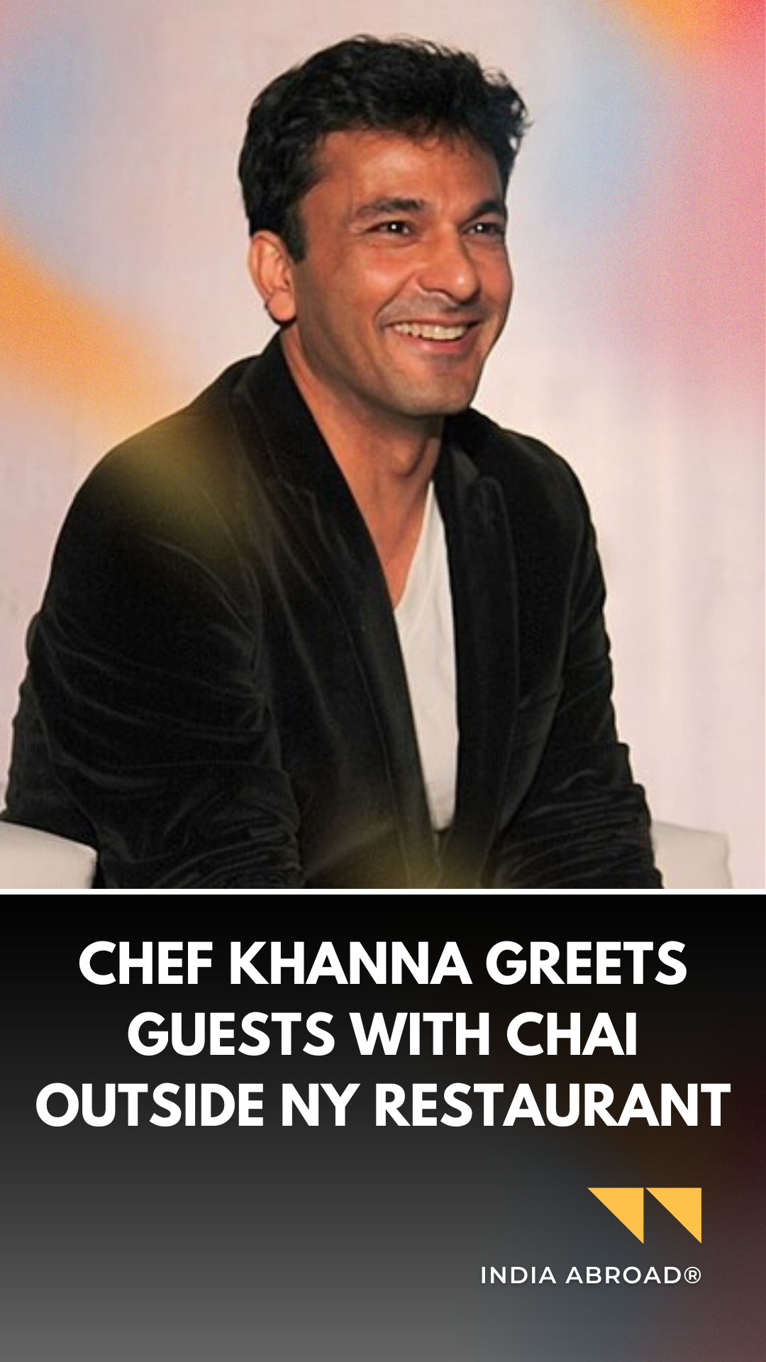 Chef Khanna greets guests with chai outside NY restaurant