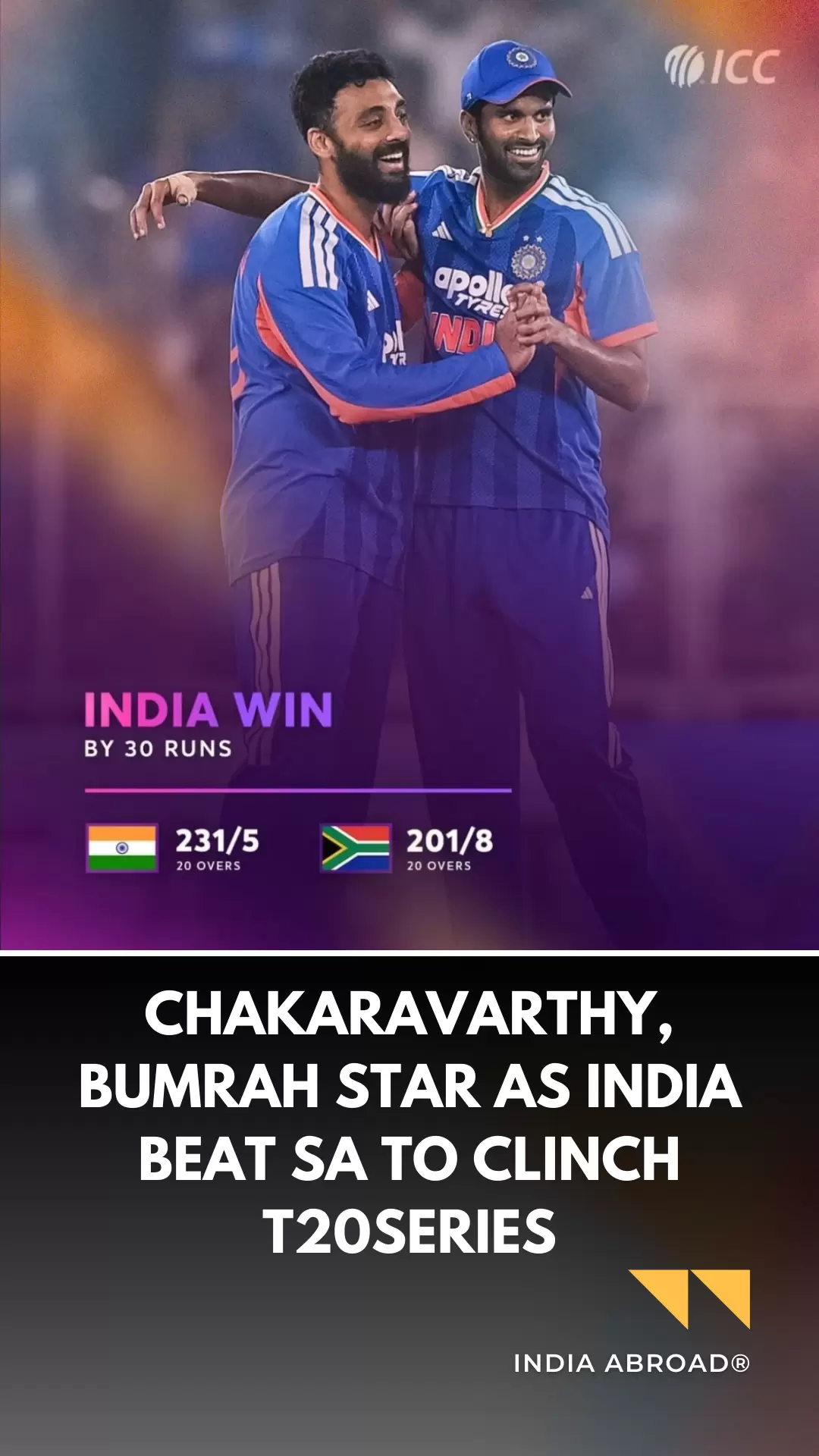 Chakaravarthy, Bumrah star as India beat SA to clinch T20series