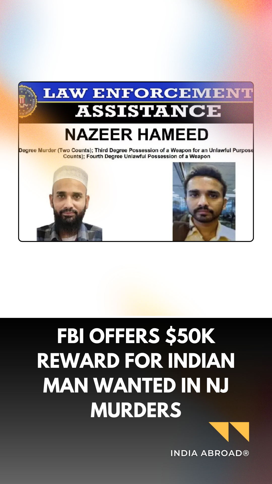 FBI offers $50K reward for Indian man wanted in NJ murders