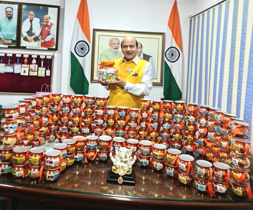 ਰਾਮ ਮੰਦਰ ਦੇ ਜਲਾਭਿਸ਼ੇਕ ਲਈ ਪਾਣੀ ਨਾਲ ਵਿਜੇ ਜੌਲੀ / ਸਰੋਤ