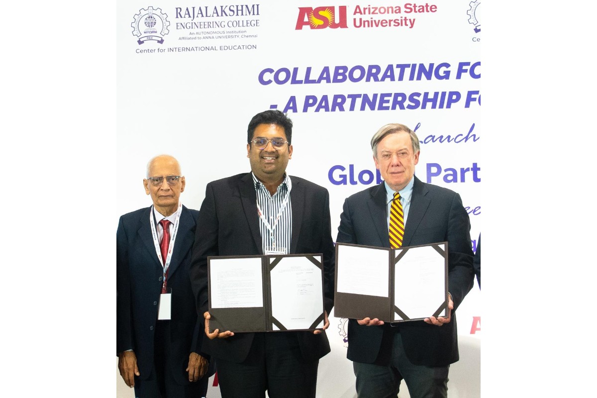 ਅਰੀਜ਼ੋਨਾ ਸਟੇਟ ਯੂਨੀਵਰਸਿਟੀ (ASU) ਨੇ ਭਾਰਤ ਦੇ ਰਾਜਲਕਸ਼ਮੀ ਇੰਜੀਨੀਅਰਿੰਗ ਕਾਲਜ (REC) ਨਾਲ ਇੱਕ ਨਵੀਂ ਸਾਂਝੇਦਾਰੀ ਦਾ ਐਲਾਨ ਕੀਤਾ ਹੈ। ਇਸ ਸਹਿਯੋਗ ਦਾ ਉਦੇਸ਼ ਭਾਰਤੀ ਵਿਦਿਆਰਥੀਆਂ ਲਈ ਵਿਦਿਅਕ ਮੌਕਿਆਂ ਦਾ ਵਿਸਤਾਰ ਕਰਨਾ ਹੈ।