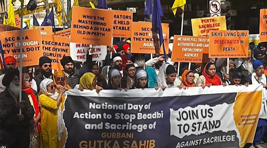 ਸਿੱਖ ਸੰਗਤ ਵੱਲੋਂ ਤਸਮਾਨੀਆ ਸੂਬੇ ਦੇ ਸ਼ਹਿਰ ਹੋਬਾਰਟ ਚ' ਪਾਰਲੀਮੈਂਟ ਬਾਹਰ “ ਜਾਗਰੂਕਤਾ ਇਕੱਠ “ ਕੀਤਾ ਗਿਆ ਤੇ ਪੁਲਸ ਅਤੇ ਪ੍ਰਸ਼ਾਸ਼ਨ ਤੋਂ ਇਸ ਸਿਲਸਿਲੇ ਵਿੱਚ ਸਖਤ ਕਾਰਵਾਈ ਦੀ ਮੰਗ ਕੀਤੀ ਗਈ । ਵੈਸਟਰਨ ਆਸਟਰੇਲੀਆ ਦੀ ਪੁਲਸ ਨੇ ਸਟੇਟਮੈਂਟ ਜਾਰੀ ਕਰਦਿਆਂ ਕਿਹਾ ਕਿ ਮਾਮਲੇ ਦੀ ਰੰਭੀਰਤਾ ਨੂੰ ਦੇਖਦੇ ਹੋਏ ਸਖ਼ਤ ਕਦਮ ਚੁੱਕੇ ਜਾ ਰਹੇ ਹਨ ਤੇ ਇਸ ਸੰਬੰਧ ਵਿੱਚ ਇੱਕ 20 ਸਾਲਾ ਵਿਅਕਤੀ ਨੂੰ ਪੁਲਸ ਵੱਲੋਂ ਹਿਰਾਸਤ ਵਿੱਚ ਲੈ ਕੇ ਬਾਰੀਕੀ ਨਾਲ ਜਾਂਚ ਕੀਤੀ ਜਾ ਰਹੀ ਹੈ।