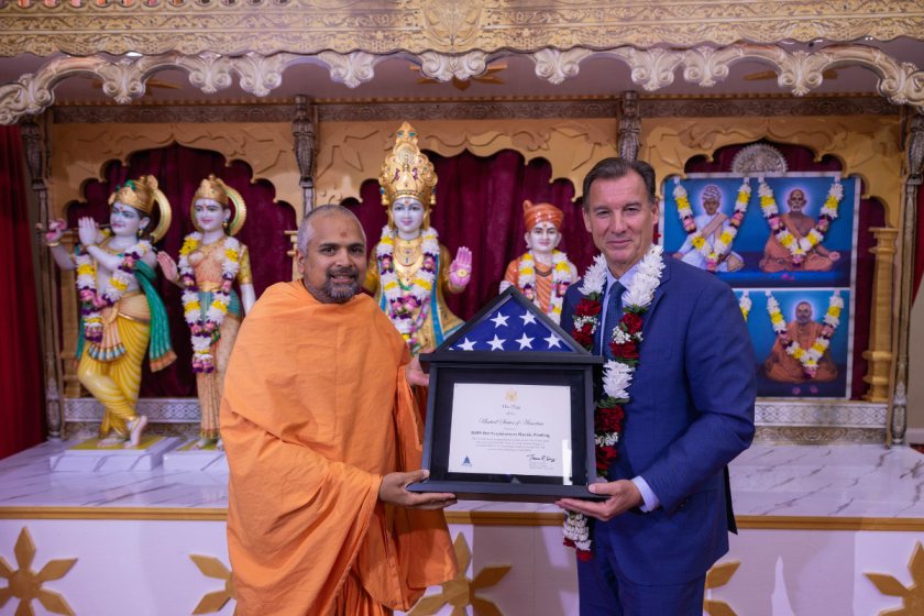 ਨਿਊਯਾਰਕ ਵਿੱਚ, ਕਾਂਗਰਸਮੈਨ ਟੌਮ ਸੂਜ਼ੀ ਨੂੰ ਯੂਐਸ ਕੈਪੀਟਲ ਝੰਡੇ ਨਾਲ ਸਨਮਾਨਿਤ ਕੀਤਾ ਗਿਆ। / Image: BAPS North America