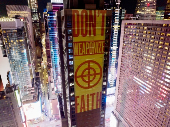 ਮਨੁੱਖੀ ਅਧਿਕਾਰ ਸਮੂਹਾਂ ਨੇ ਅੱਜ ਰਾਤ ਟਾਈਮਜ਼ ਸਕੁਏਅਰ ਵਿੱਚ ਇੱਕ ਅਨੋਖਾ ਪ੍ਰਦਰਸ਼ਨ ਕਰਦਿਆਂ ਮੋਦੀ ਸਰਕਾਰ ’ਤੇ ਰਾਜਨੀਤਿਕ ਲਾਭ ਲਈ ਹਿੰਦੂ ਧਰਮ ਦੀ "ਦੁਰਵਰਤੋਂ" ਦਾ ਦੋਸ਼ ਲਗਾਇਆ।
