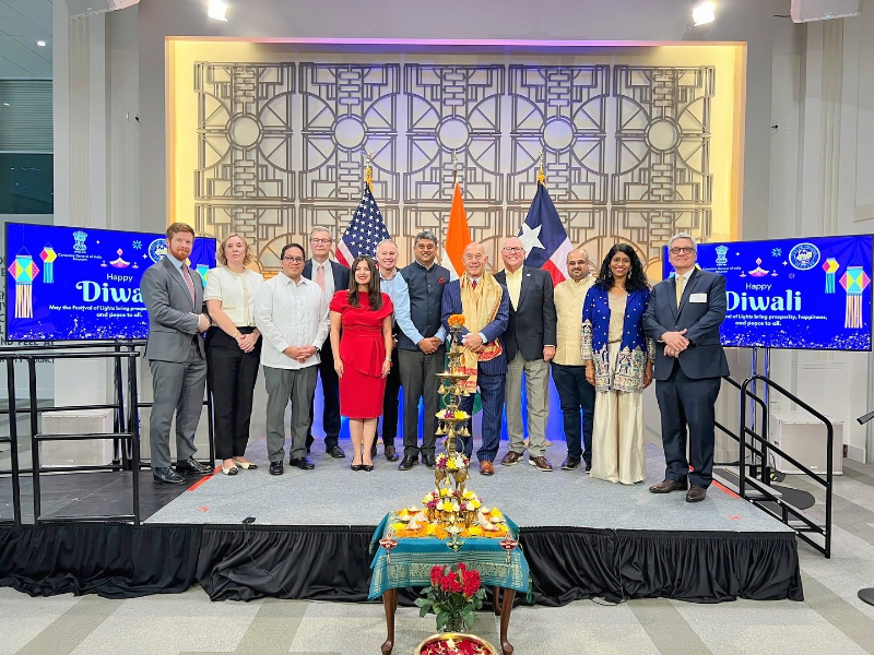 ਹਿਊਸਟਨ ਦੇ ਮੇਅਰ ਜੌਨ ਵਿਟਮਾਇਰ ਨੇ ਇਸ ਹਫ਼ਤੇ ਹਿਊਸਟਨ ਸਿਟੀ ਹਾਲ ਵਿਖੇ ਭਾਰਤੀ ਭਾਈਚਾਰੇ ਅਤੇ ਭਾਰਤ ਦੇ ਕੌਂਸਲ ਜਨਰਲ, ਡੀ.ਸੀ. ਮੰਜੀਨਾਥ ਨਾਲ ਦੀਵਾਲੀ ਮਨਾਈ। ਉਨ੍ਹਾਂ ਕਿਹਾ ਕਿ ਇਹ ਤਿਉਹਾਰ ਅੱਜ ਦੇ ਅਸਥਿਰ ਸੰਸਾਰ ਵਿੱਚ ਉਮੀਦ ਅਤੇ ਏਕਤਾ ਦਾ ਜ਼ਰੂਰੀ ਸੰਦੇਸ਼ ਦਿੰਦਾ ਹੈ। ਹਿਊਸਟਨ ਸ਼ਹਿਰ ਪ੍ਰਸ਼ਾਸਨ ਦੁਆਰਾ ਆਯੋਜਿਤ ਇਸ ਪ੍ਰੋਗਰਾਮ ਵਿੱਚ ਕੌਂਸਲਰ ਕੋਰ ਦੇ ਮੈਂਬਰ, ਚੁਣੇ ਹੋਏ ਅਧਿਕਾਰੀ ਅਤੇ ਭਾਈਚਾਰਕ ਨੇਤਾ ਸ਼ਾਮਲ ਹੋਏ। ਸ਼ਾਮ ਨੂੰ ਭਾਰਤੀ ਸ਼ਾਸਤਰੀ ਨਾਚ, ਕਥਕ ਦਾ ਇੱਕ ਸੁੰਦਰ ਪ੍ਰਦਰਸ਼ਨ ਪੇਸ਼ ਕੀਤਾ ਗਿਆ ।