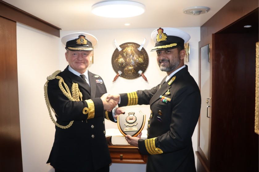 ਕਮੋਡੋਰ ਆਰ. ਬੇਲਫੀਲਡ, NRC LEE, ਨੇ INS ਤੁਸ਼ੀਲ ਦਾ ਦੌਰਾ ਕੀਤਾ ਅਤੇ INS ਤੁਸ਼ੀਲ ਦੀ ਲੰਡਨ ਲਈ ਪਹਿਲੀ ਪੋਰਟ ਕਾਲ ਦੌਰਾਨ ਕਮਾਂਡਿੰਗ ਅਫਸਰ, ਕੈਪਟਨ ਪੀਟਰ ਵਰਗੀਸ ਨਾਲ ਆਪਸੀ ਹਿੱਤਾਂ ਦੇ ਮਾਮਲਿਆਂ 'ਤੇ ਚਰਚਾ ਕੀਤੀ / X/@indiannavy