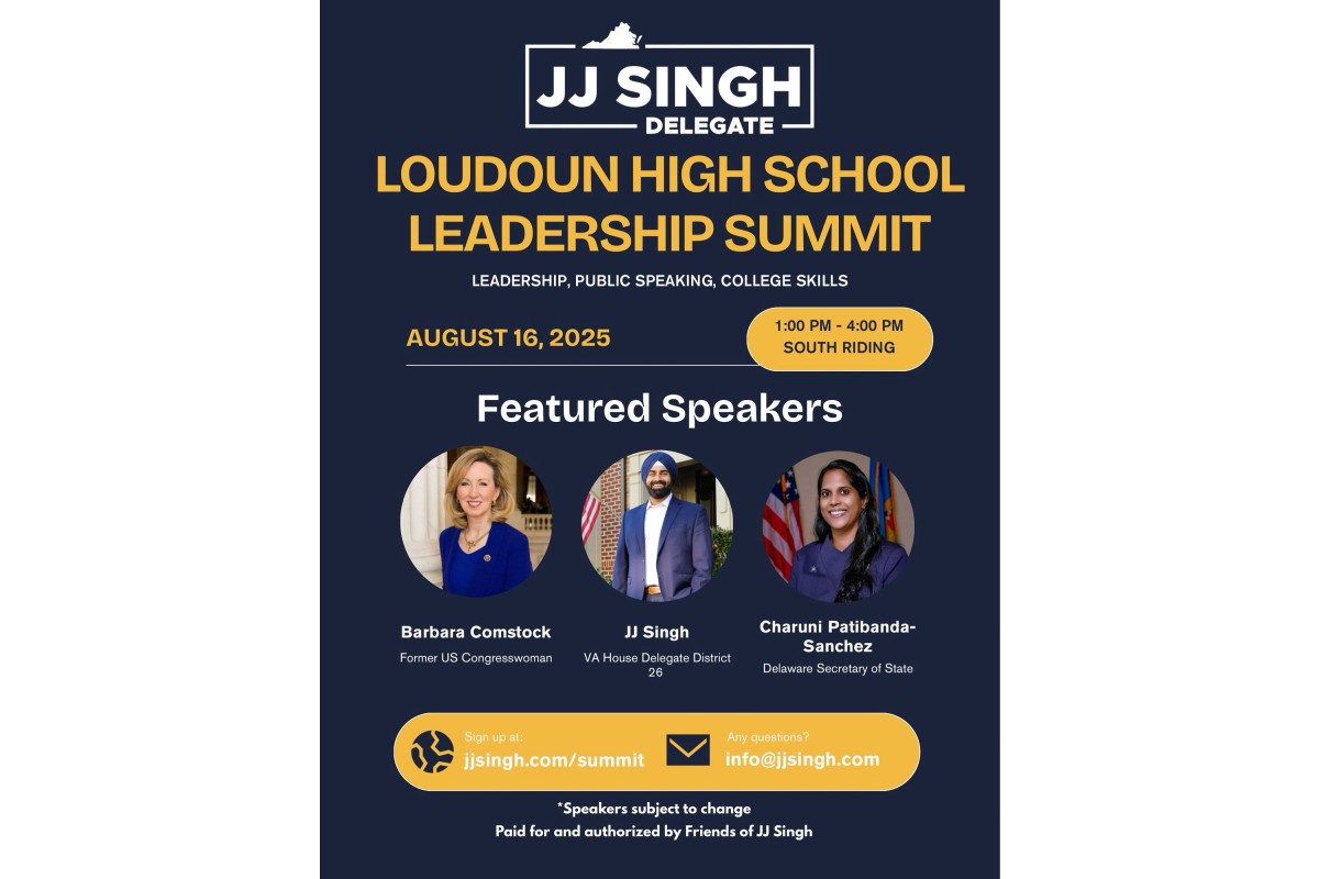 ਵਰਜੀਨੀਆ ਦੇ ਡੈਲੀਗੇਟ ਜੇ.ਜੇ. ਸਿੰਘ- ਲਾਊਡਨ ਕਾਉਂਟੀ, ਵਰਜੀਨੀਆ ਵਿੱਚ ਹਾਈ ਸਕੂਲ ਦੇ ਵਿਦਿਆਰਥੀਆਂ ਲਈ ਇੱਕ ਲੀਡਰਸ਼ਿਪ ਪ੍ਰੋਗਰਾਮ ਦੀ ਅਗਵਾਈ ਕਰ ਰਹੇ ਹਨ। ਇਸ ਮੀਟਿੰਗ ਦਾ ਉਦੇਸ਼ ਵਿਦਿਆਰਥੀਆਂ ਦੇ ਮੁੱਖ ਖੇਤਰਾਂ ਜਿਵੇਂ ਕਿ ਪਬਲਿਕ ਸਪੀਕਿੰਗ ਵਿੱਚ ਕਾਬਲੀਆਤ ਨੂੰ ਮਜ਼ਬੂਤ ਕਰਨਾ ਅਤੇ ਅਗਲੀ ਪੀੜ੍ਹੀ ਵਿੱਚ ਮਜ਼ਬੂਤ ਲੀਡਰਸ਼ਿਪ ਹੁਨਰ ਨੂੰ ਵਿਕਸਤ ਕਰਨਾ ਹੈ।