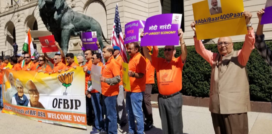 ਸ਼ਿਕਾਗੋ ਵਿੱਚ 100 ਤੋਂ ਵੱਧ ਭਾਰਤੀ ਅਮਰੀਕੀ ਪ੍ਰਸਿੱਧ ਵਿਵੇਕਾਨੰਦਾ ਸਥਾਨ 'ਤੇ ਇੱਕ ਚਮਕਦਾਰ ਧੁੱਪ ਵਾਲੇ ਦਿਨ ਇਕੱਠੇ ਹੋਏ ਅਤੇ 'ਮੋਦੀ ਕਾ ਪਰਿਵਾਰ' ਮਾਰਚ ਦਾ ਆਯੋਜਨ ਕੀਤਾ। ਭਗਵੇਂ ਰੰਗ ਦੀਆਂ ਕਮੀਜ਼ਾਂ ਵਿੱਚ ਪਲੇਅ ਕਾਰਡ ਦਿਖਾਉਂਦੇ ਹੋਏ “ਅਬਕੀ ਬਾਰ 400 ਪਾਰ”, “ਮੋਦੀ ਗਾਰੰਟੀ” ਵਰਗੇ ਨਾਅਰਿਆਂ ਵਾਲੇ ਪੁਰਸ਼ ਅਤੇ ਔਰਤਾਂ ਨੇ ਭਾਜਪਾ ਅਤੇ ਭਾਰਤੀ ਵੋਟਰਾਂ ਨੂੰ ਮੋਦੀ ਅਤੇ ਭਾਜਪਾ ਨੂੰ ਵੋਟ ਦੇਣ ਦੀ ਅਪੀਲ ਕਰਦੇ ਹੋਏ ਮਾਰਚ ਕੀਤਾ।