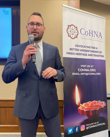 ਐਰੋਨ ਗ੍ਰਾਸ, ਨੈੱਟਵਰਕ ਕੰਟੈਜਿਅਨ ਰਿਸਰਚ ਇੰਸਟੀਚਿਊਟ (NCRI) ਦੇ ਰਿਸਰਚ ਫੈਲੋ, ਨੇ CoHNA ਦੇ ਤੀਜੇ ਹਿੰਦੂ ਐਡਵੋਕੇਸੀ ਦਿਵਸ ਵਿੱਚ ਹਿੱਸਾ ਲਿਆ। / @CoHNACanada