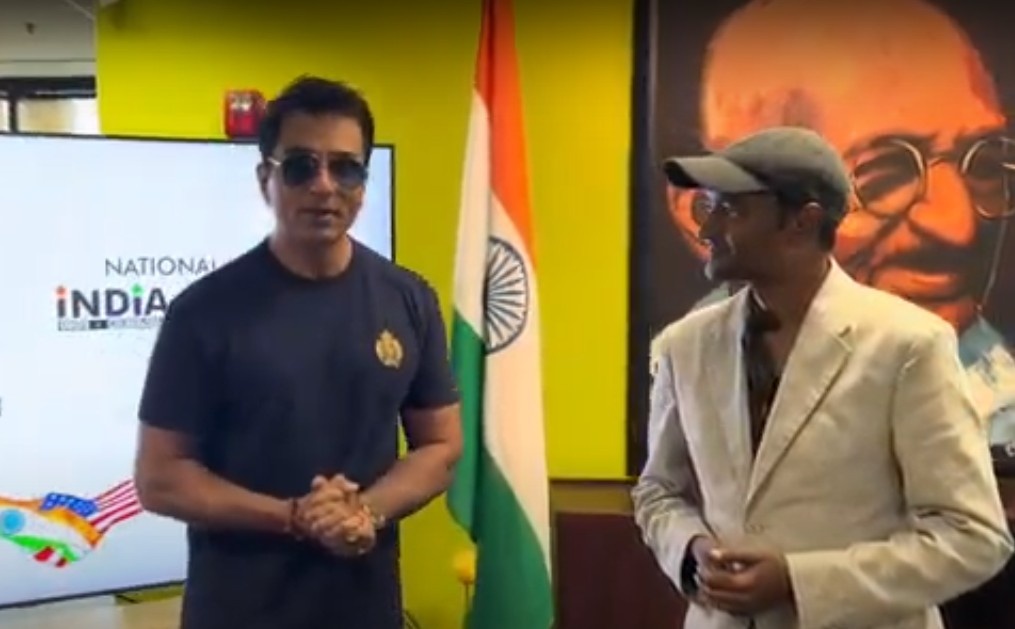 ਸ਼ਿਕਾਗੋ ਦਫ਼ਤਰ ਦੇ ਉਦਘਾਟਨ ਮੌਕੇ ਪ੍ਰਸਿੱਧ ਅਭਿਨੇਤਾ ਅਤੇ ਪਰਉਪਕਾਰੀ ਸੋਨੂੰ ਸੂਦ ਅਤੇ ਹਰੀਸ਼ ਕੋਲਾਸਾਨੀ, ਨੈਸ਼ਨਲ ਇੰਡੀਆ ਹੱਬ ਦੇ ਸੰਸਥਾਪਕ ਚੇਅਰਮੈਨ। / screenshot from video provided