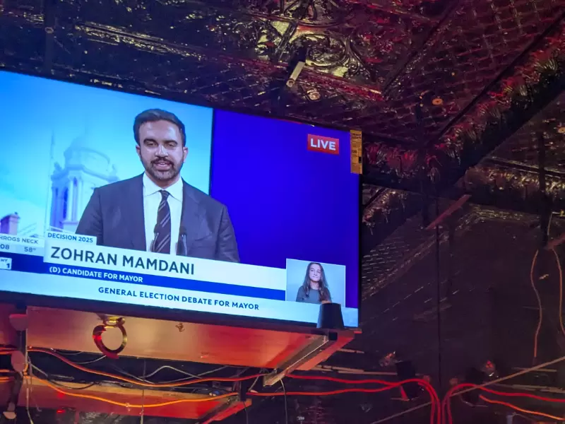 ਕੁਈਨਜ਼ ਦੇ ਓਜ਼ੋਨ ਪਾਰਕ ਵਿੱਚ ਦੱਖਣੀ ਏਸ਼ੀਆਈ ਅਤੇ ਇੰਡੋ-ਕੈਰੇਬੀਅਨ ਅਧਿਕਾਰ ਸਮੂਹ ਡ੍ਰਮ ਬੀਟਸ ਦੁਆਰਾ ਆਯੋਜਿਤ ਇੱਕ ਵਾਚ-ਪਾਰਟੀ ਵਿੱਚ, ਦਰਸ਼ਕਾਂ ਨੇ ਕਿਹਾ ਕਿ ਮਮਦਾਨੀ ਦੂਜੇ ਉਮੀਦਵਾਰਾਂ ਤੋਂ ਵੱਖਰਾ ਦਿਖਾਈ ਦਿੰਦਾ ਸੀ।