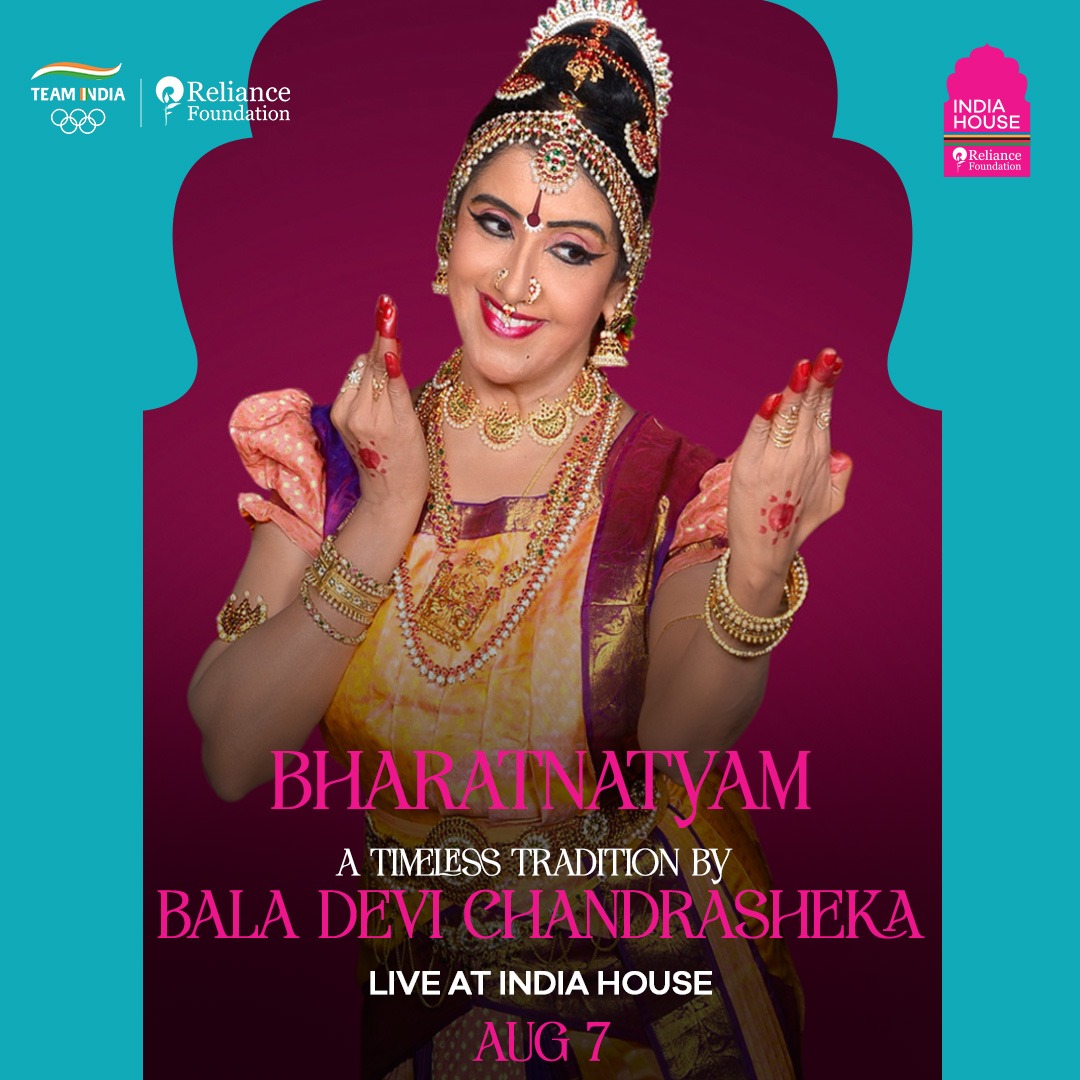 ਪ੍ਰਸਿੱਧ ਭਾਰਤੀ ਮੂਲ ਦੀ ਭਰਤਨਾਟਿਅਮ ਡਾਂਸਰ ਬਾਲਾ ਦੇਵੀ ਚੰਦਰਸ਼ੇਕਰ ਪੈਰਿਸ ਓਲੰਪਿਕ ਦੇ ਸੱਭਿਆਚਾਰਕ ਜਸ਼ਨਾਂ ਦੇ ਹਿੱਸੇ ਵਜੋਂ, 7 ਅਗਸਤ ਨੂੰ ਪੈਰਿਸ ਵਿੱਚ ਇੰਡੀਆ ਹਾਊਸ ਵਿੱਚ "ਭਰਤਨਾਟਿਅਮ" ਪੇਸ਼ ਕਰੇਗੀ। ਹਾਲ ਹੀ ਵਿੱਚ ਉਦਘਾਟਨ ਕੀਤਾ ਗਿਆ  ਇੰਡੀਆ ਹਾਊਸ  ਦੇਸ਼ ਦਾ ਪਹਿਲਾ ਓਲੰਪਿਕ ਹਾਊਸ ਹੈ।