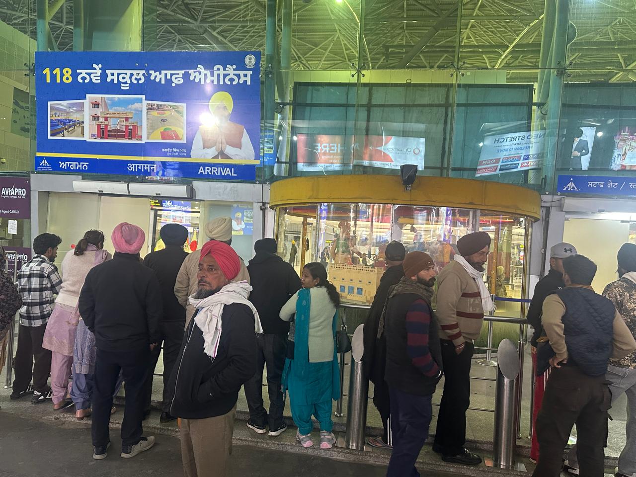 ਅੰਮ੍ਰਿਤਸਰ ਹਵਾਈ ਅੱਡੇ ਉੱਤੇ ਸੀਆਈਐੱਸਐੱਫ ਸੁਰੱਖਿਆ ਹੇਠ ਇਮੀਗ੍ਰੇਸ਼ਨ ਲਈ ਜਾਂਦੇ ਹੋਏ ਭਾਰਤੀ ਡਿਪੋਰਟੀ / ਜੇਕੇ ਸਿੰਘ/ਨਿਊ ਇੰਡੀਆ ਅਬਰੋਡ