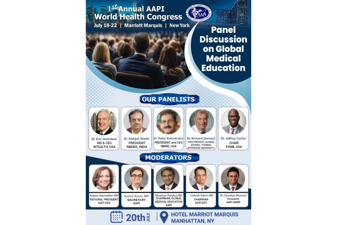 ਅਮਰੀਕਨ ਐਸੋਸੀਏਸ਼ਨ ਆਫ ਫਿਜ਼ੀਸ਼ੀਅਨਜ਼ ਆਫ ਇੰਡੀਅਨ ਓਰੀਜਨ (ਏਏਪੀਆਈ) ਦੁਆਰਾ ਆਯੋਜਿਤ ਦਹਾਕੇ ਦਾ ਇੱਕ ਮੈਗਾ ਸੰਮੇਲਨ, ਫਿਜ਼ੀਸ਼ੀਅਨਜ਼ ਦੀ ਪਹਿਲੀ ਵਿਸ਼ਵ ਕਾਂਗਰਸ, ਨਿਊਯਾਰਕ ਸਿਟੀ ਵਿੱਚ 18 ਤੋਂ 22 ਜੁਲਾਈ ਤੱਕ ਹੋਵੇਗੀ।