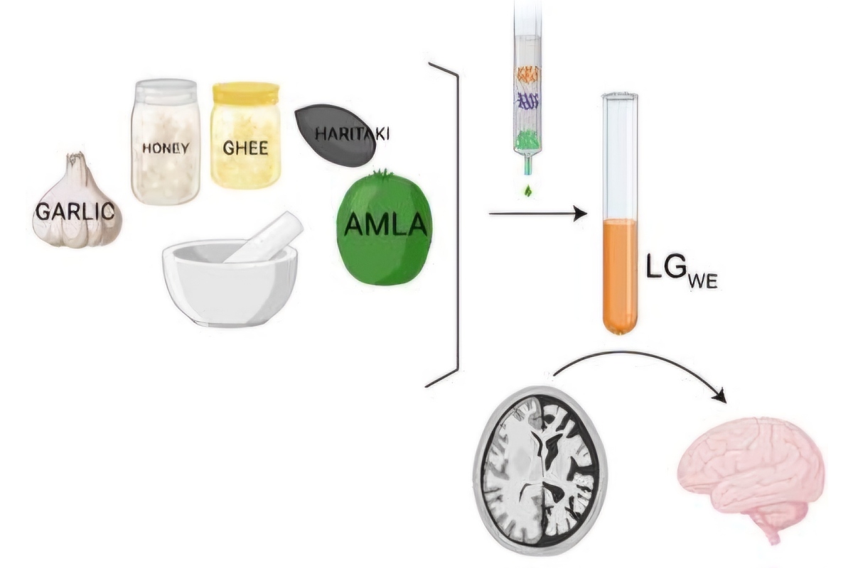 ਇਹ ਅਧਿਐਨ, ਜਿਸ ਵਿੱਚ ਸਾਹਾ ਇੰਸਟੀਚਿਊਟ ਆਫ਼ ਨਿਊਕਲੀਅਰ ਫਿਜ਼ਿਕਸ (SINP) ਕੋਲਕਾਤਾ ਅਤੇ IIT-ਗੁਹਾਟੀ ਦੇ ਸਹਿਯੋਗ ਸ਼ਾਮਲ ਹਨ, ਇੱਕ ਆਯੁਰਵੈਦਿਕ ਤਿਆਰੀ, ਲਸੁਨਾਦਿਆ ਘ੍ਰਿਤਾ (LG) ਦੇ ਨਾਲ ਰਸਾਇਣਕ ਤੌਰ 'ਤੇ ਤਿਆਰ ਕੀਤੇ ਗਏ ਪੇਪਟਾਇਡਸ ਦਾ ਲਾਭ ਉਠਾਉਂਦਾ ਹੈ। LG, ਜੋ ਕਿ ਰਵਾਇਤੀ ਤੌਰ 'ਤੇ ਡਿਪਰੈਸ਼ਨ ਵਰਗੀਆਂ ਮਾਨਸਿਕ ਬਿਮਾਰੀਆਂ ਦੇ ਇਲਾਜ ਲਈ ਵਰਤਿਆ ਜਾਂਦਾ ਸੀ, ਨੂੰ ਦੁਬਾਰਾ ਤਿਆਰ ਕੀਤਾ ਗਿਆ ਅਤੇ Aβ 40/42 ਸਮੂਹ ਨੂੰ ਪ੍ਰਭਾਵਸ਼ਾਲੀ ਢੰਗ ਨਾਲ ਰੋਕਣ ਅਤੇ ਜ਼ਹਿਰੀਲੇ ਐਮੀਲੋਇਡ ਸਮੂਹਾਂ ਨੂੰ ਭੰਗ ਕਰਨ ਲਈ ਪਾਇਆ ਗਿਆ।