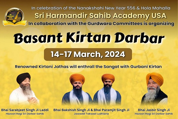 ਸਿੱਖ ਫਾਊਂਡੇਸ਼ਨ ਆਫ ਵਰਜੀਨੀਆ ਗੁਰਦੁਆਰਾ ਸਾਹਿਬ ਵੱਲੋਂ ਸਿੱਖ ਨਵੇਂ ਸਾਲ (ਨਾਨਕਸ਼ਾਹੀ ਸਾਲ 556) ਦੀ ਸ਼ੁਰੂਆਤ 14 ਮਾਰਚ ਨੂੰ ਇੱਕ ਵਿਸ਼ੇਸ਼ ਬਸੰਤ ਕੀਰਤਨ ਦਰਬਾਰ ਨਾਲ ਕੀਤੀ ਗਈ। ਇਸ ਮੌਕੇ ਵਿਸ਼ੇਸ਼ ਬਸੰਤ ਕੀਰਤਨ ਦਰਬਾਰ ਕਰਵਾਇਆ ਗਿਆ।