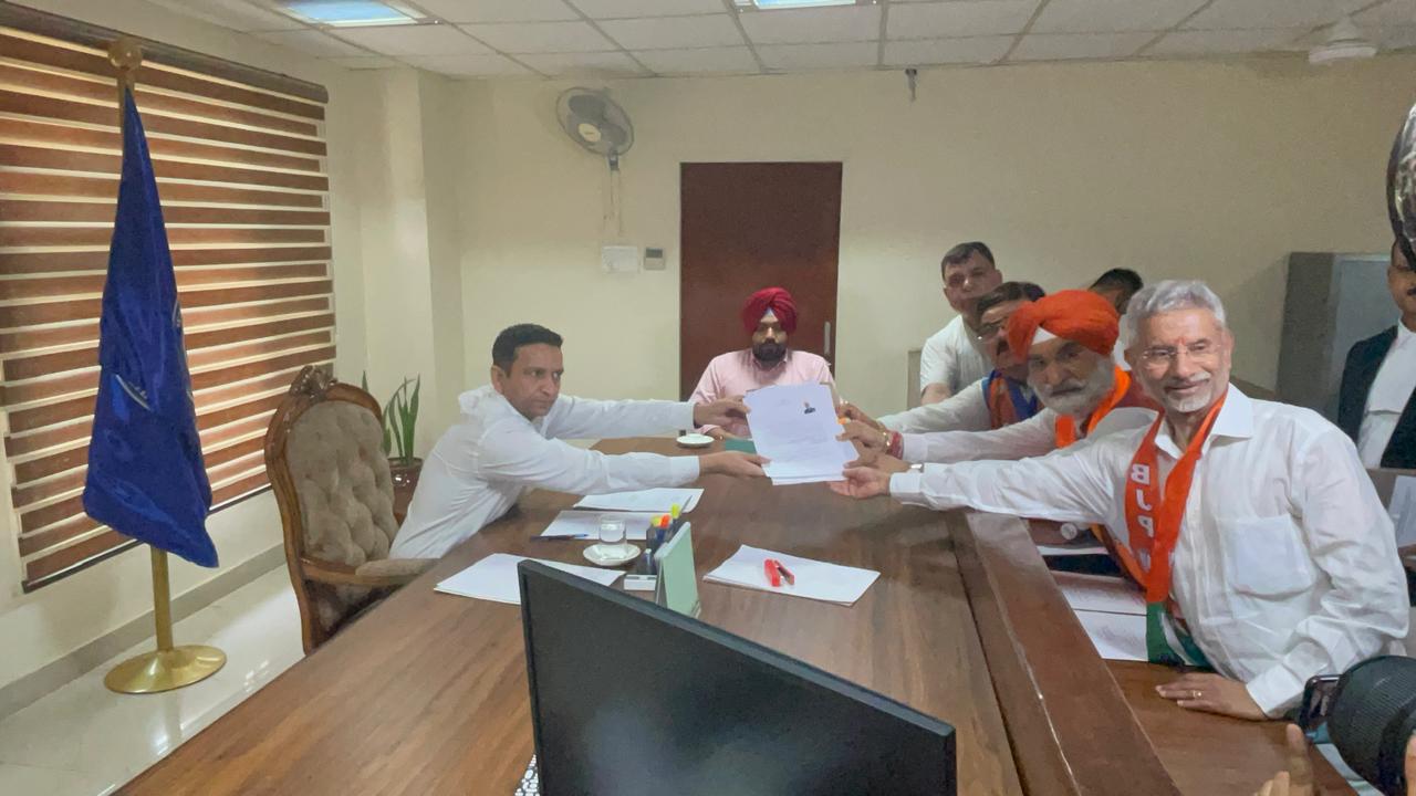 ਅੰਮ੍ਰਿਤਸਰ ਤੋਂ ਭਾਰਤੀ ਜਨਤਾ ਪਾਰਟੀ ਉਮੀਦਵਾਰ ਤਰਨਜੀਤ ਸਿੰਘ ਸੰਧੂ ਸਮੁੰਦਰੀ ਵੱਲੋਂ ਅੱਜ ਕੇਂਦਰੀ ਵਿਦੇਸ਼ ਮੰਤਰੀ ਡਾ. ਐਸ ਜੈਸ਼ੰਕਰ ਦੀ ਵਿਸ਼ੇਸ਼ ਮੌਜੂਦਗੀ ਵਿਚ ਜ਼ਿਲ੍ਹਾ ਡਿਪਟੀ ਕਮਿਸ਼ਨਰ ਕਮ ਜ਼ਿਲ੍ਹਾ ਚੋਣ ਅਧਿਕਾਰੀ ਸ੍ਰੀ ਘਨਸ਼ਿਆਮ ਥੋਰੀ ਕੋਲ ਆਪਣੇ ਨਾਮਜ਼ਦਗੀ ਪੱਤਰ ਦਾਖ਼ਲ ਕਰਵਾਏ ਗਏ। ਇਸ ਮੌਕੇ ਭਾਜਪਾ ਕਿਸਾਨ ਮੋਰਚਾ ਦੇ ਕੌਮੀ ਮੀਤ ਪ੍ਰਧਾਨ ਅਤੇ ਭਾਰਤੀ ਖੇਤੀ ਖੋਜ ਪ੍ਰੀਸ਼ਦ ਦੇ ਗਵਰਨਿੰਗ ਬਾਡੀ ਦੇ ਮੈਂਬਰ ਅਤੇ ਤਿੰਨ ਵਾਰ ਸਾਂਸਦ ਰਹਿ ਚੁੱਕੇ ਸੁਰੇਸ਼ ਚੰਦੇਲ, ਸਾਬਕਾ ਰਾਜ ਸਭਾ ਮੈਂਬਰ ਸ਼ਵੇਤ ਮਲਿਕ, ਜ਼ਿਲ੍ਹਾ ਪ੍ਰਧਾਨ ਹਰਵਿੰਦਰ ਸਿੰਘ ਸੰਧੂ ਵੀ ਮੌਜੂਦ ਸਨ।