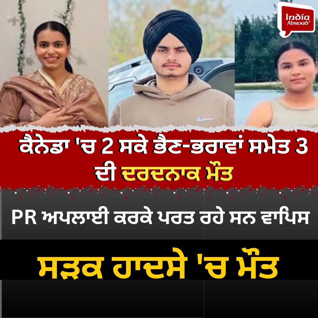 ਅਜਿਹੀ ਹੀ ਇੱਕ ਦਰਦਨਾਕ ਘਟਨਾ ਕੈਨੇਡਾ ਤੋਂ ਸਾਹਮਣੇ ਆਈ ਹੈ। ਜਿੱਥੇ 2 ਸਕੇ ਭੈਣ-ਭਰਾਵਾਂ ਸਮੇਤ 3 ਬੱਚਿਆਂ ਦੀ ਸੜਕ ਹਾਦਸੇ 'ਚ ਦਰਦਨਾਕ ਮੌਤ ਹੋਈ ਹੈ। ਇਸ ਦੁਰਘਟਨਾ ਤੋਂ ਬਾਅਦ ਬੱਚਿਆਂ ਦੇ ਪਰਿਵਾਰ ਦਾ ਰੋ-ਰੋ ਕੇ ਬੁਰਾ ਹਾਲ ਹੈ। ਮ੍ਰਿਤਕਾਂ ਦੀ ਪਛਾਣ ਹਰਮਨ ਸੋਮਲ (23), ਉਸ ਦਾ ਭਰਾ ਨਵਜੋਤ ਸੋਮਲ (19) ਜੋ ਲੁਧਿਆਣਾ ਦੇ ਮਲੌਦ ਨਾਲ ਸਬੰਧਿਤ ਸਨ ਅਤੇ ਰੇਸ਼ਮ ਸਮਾਣਾ (23) ਵਜੋਂ ਹੋਈ ਹੈ। ਹਾਦਸੇ ਦੀ ਸੂਚਨਾ ਨਾਲ ਇਲਾਕੇ ਵਿਚ ਸੋਗ ਦੀ ਲਹਿਰ ਦੌੜ ਗਈ ਹੈ।