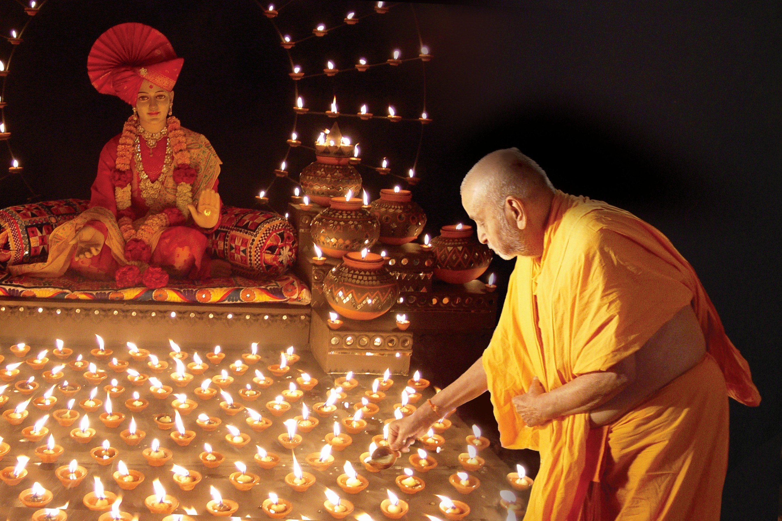ਪ੍ਰਮੁੱਖ ਸਵਾਮੀ ਮਹਾਰਾਜ ਦੀਵਾਲੀ ਦੇ ਦਿਹਾੜੇ ਦੀਪ ਜਗਾਉਂਦੇ ਹੋਏ / BAPS
