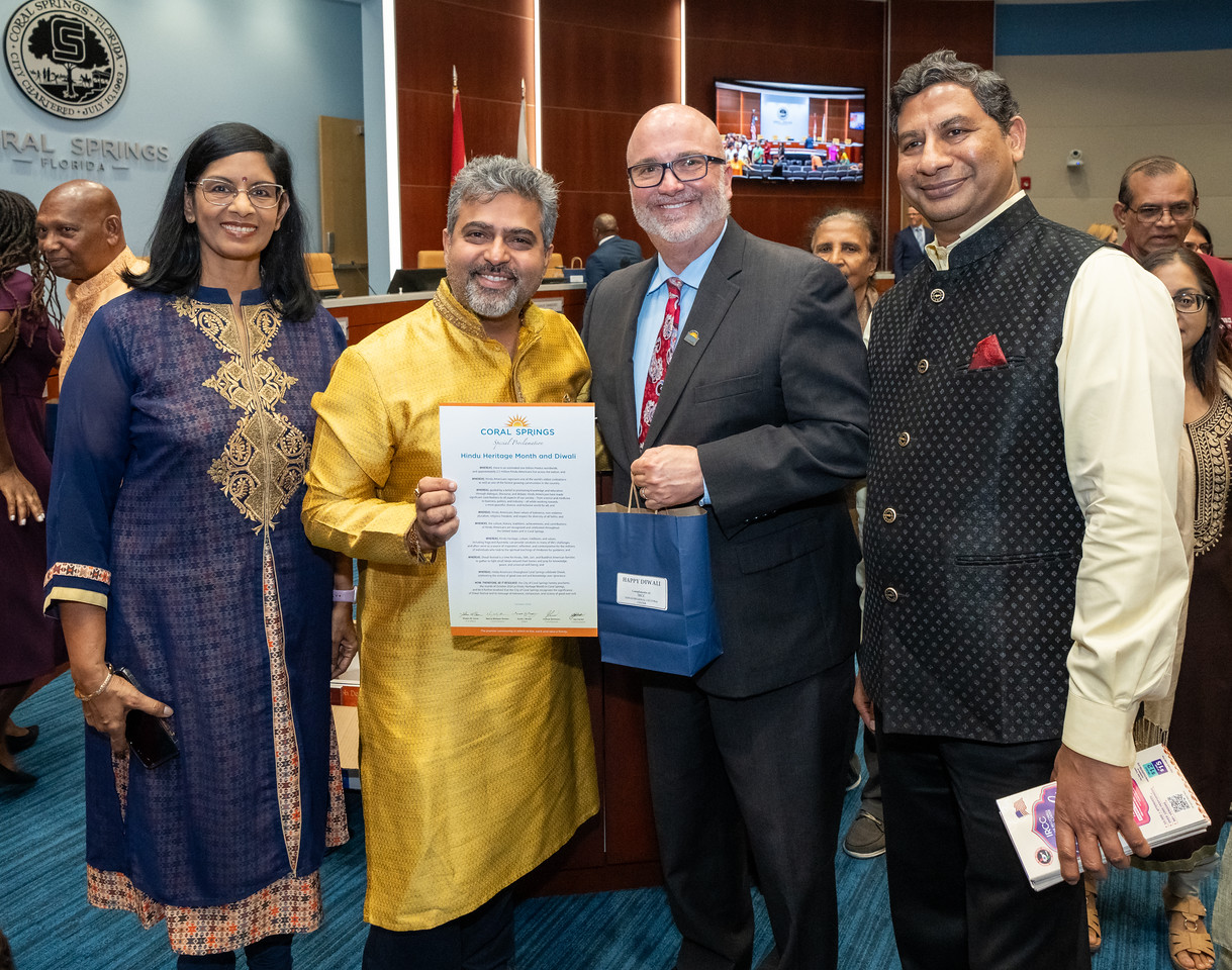 ਦੱਖਣੀ ਫਲੋਰੀਡਾ ਦੇ ਕਈ ਸ਼ਹਿਰਾਂ ਨੇ ਹਾਲੀਆ ਸਿਟੀ ਕਮਿਸ਼ਨ ਦੀਆਂ ਮੀਟਿੰਗਾਂ ਵਿੱਚ ਘੋਸ਼ਣਾ ਪੱਤਰ ਜਾਰੀ ਕਰਕੇ ਅਧਿਕਾਰਤ ਤੌਰ 'ਤੇ ਹਿੰਦੂ ਵਿਰਾਸਤੀ ਮਹੀਨੇ ਅਤੇ ਦੀਵਾਲੀ ਦੇ ਤਿਉਹਾਰ ਨੂੰ ਮਾਨਤਾ ਦਿੱਤੀ ਹੈ। ਇਹ ਘੋਸ਼ਣਾਵਾਂ ਹਿੰਦੂ ਅਮਰੀਕੀ ਭਾਈਚਾਰੇ ਦੀ ਅਮੀਰ ਸੱਭਿਆਚਾਰਕ ਵਿਰਾਸਤ ਅਤੇ ਸਿੱਖਿਆ, ਵਪਾਰ, ਨਾਗਰਿਕ ਜੀਵਨ 'ਤੇ ਉਨ੍ਹਾਂ ਦੇ ਸਕਾਰਾਤਮਕ ਪ੍ਰਭਾਵ ਨੂੰ ਉਜਾਗਰ ਕਰਦੀਆਂ ਹਨ।