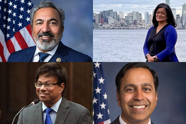 ਭਾਰਤੀ ਅਮਰੀਕੀ ਸੰਸਦ ਮੈਂਬਰ (ਉੱਪਰ ਖੱਬੇ ਤੋਂ) ਅਮੀ ਬੇਰਾ, ਪ੍ਰਮਿਲਾ ਜੈਪਾਲ, ਸ੍ਰੀ ਥਾਣੇਦਾਰ ਅਤੇ ਰਾਜਾ ਕ੍ਰਿਸ਼ਨਾਮੂਰਤੀ। / NIA Collage
