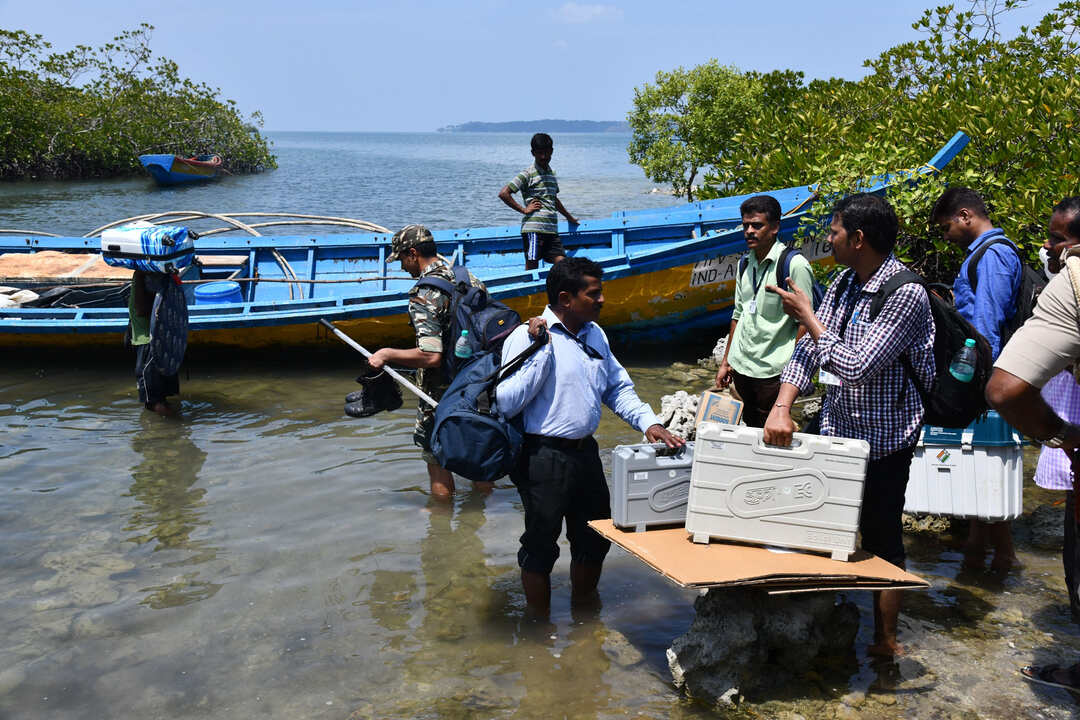 ਪੋਲਿੰਗ ਅਧਿਕਾਰੀ 10 ਅਪ੍ਰੈਲ, 2019 ਨੂੰ ਅੰਡੇਮਾਨ ਅਤੇ ਨਿਕੋਬਾਰ ਟਾਪੂਆਂ ਵਿੱਚ ਆਮ ਚੋਣਾਂ-2019 ਲਈ ਈਵੀਐੱਮ / ਪੀਆਈਬੀ