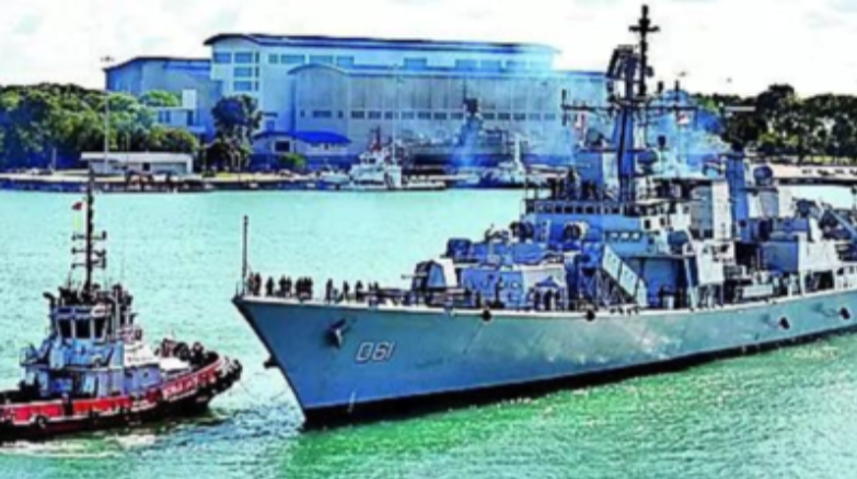 ਸਿੰਗਾਪੁਰ ਪਹੁੰਚੇ ਭਾਰਤੀ ਜਲ ਸੈਨਾ ਦੇ ਤਿੰਨ ਜਹਾਜ਼ਾਂ ਵਿੱਚੋਂ ਇੱਕ ਦੀ ਤਸਵੀਰ / NIA