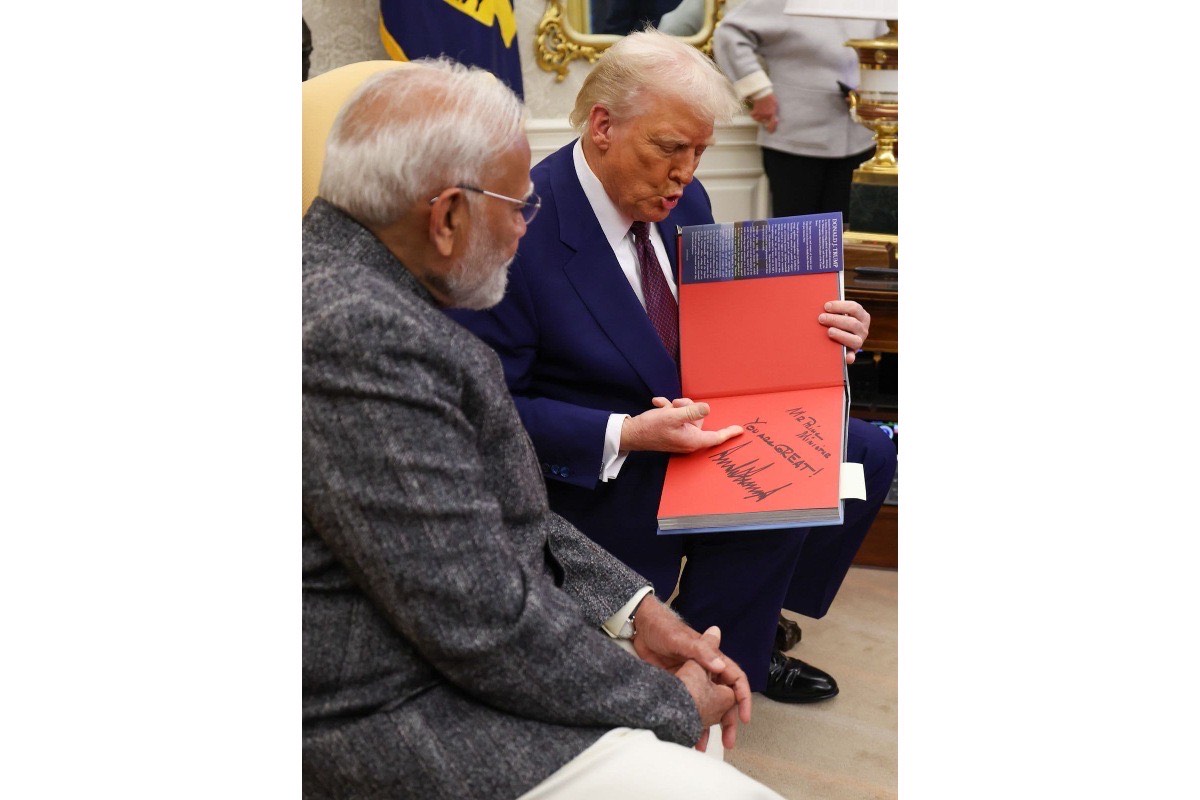 ਰਾਸ਼ਟਰਪਤੀ ਟਰੰਪ ਨੇ ਪ੍ਰਧਾਨ ਮੰਤਰੀ ਨਰੇਂਦਰ ਮੋਦੀ ਨੂੰ ਇੱਕ ਦਸਤਖਤ ਕੀਤੀ ਕਿਤਾਬ ਭੇਟ ਕੀਤੀ / X/@narendramodi