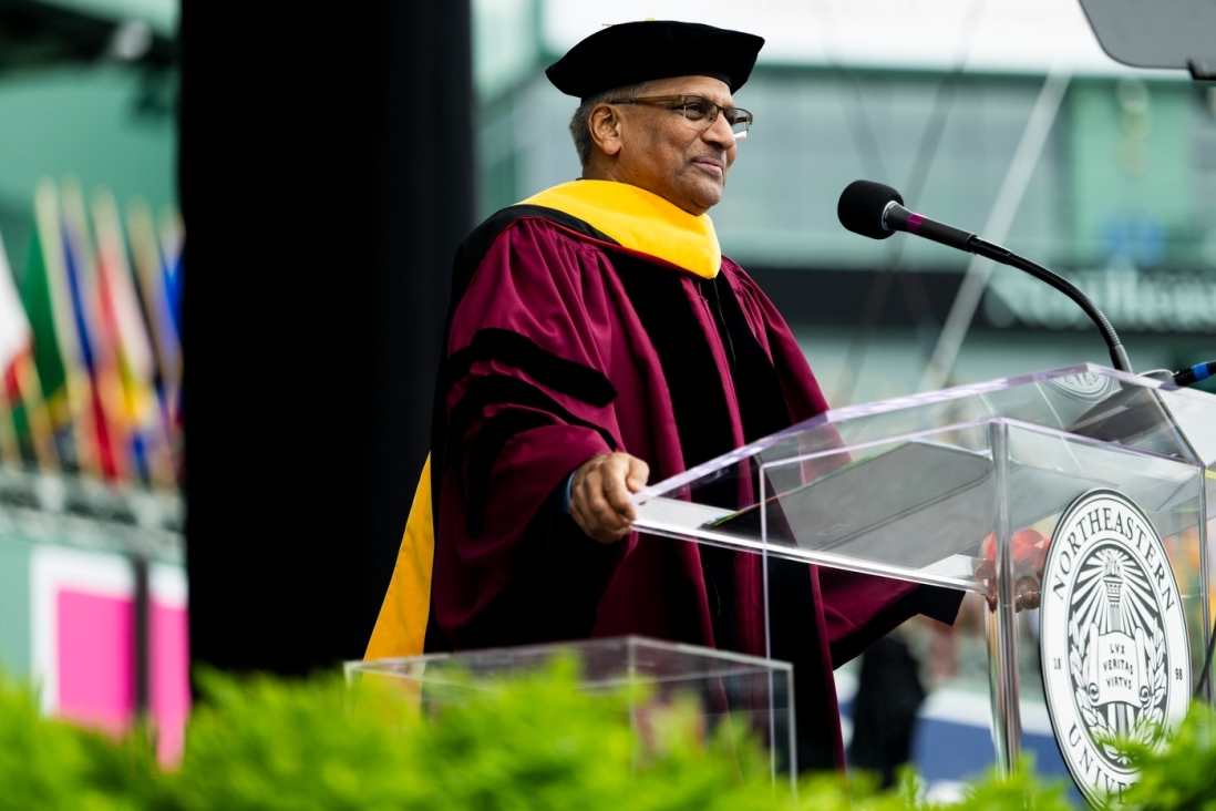 ਨੈਸ਼ਨਲ ਸਾਇੰਸ ਫਾਊਂਡੇਸ਼ਨ (ਐਨਐਸਐਫ) ਦੇ ਡਾਇਰੈਕਟਰ ਸੇਥੁਰਮਨ ਪੰਚਨਾਥਨ ਵਿਦਿਆਰਥੀਆਂ ਨੂੰ ਸੰਬੋਧਨ ਕਰਦੇ ਹੋਏ / Photo by Alyssa Stone/Northeastern University