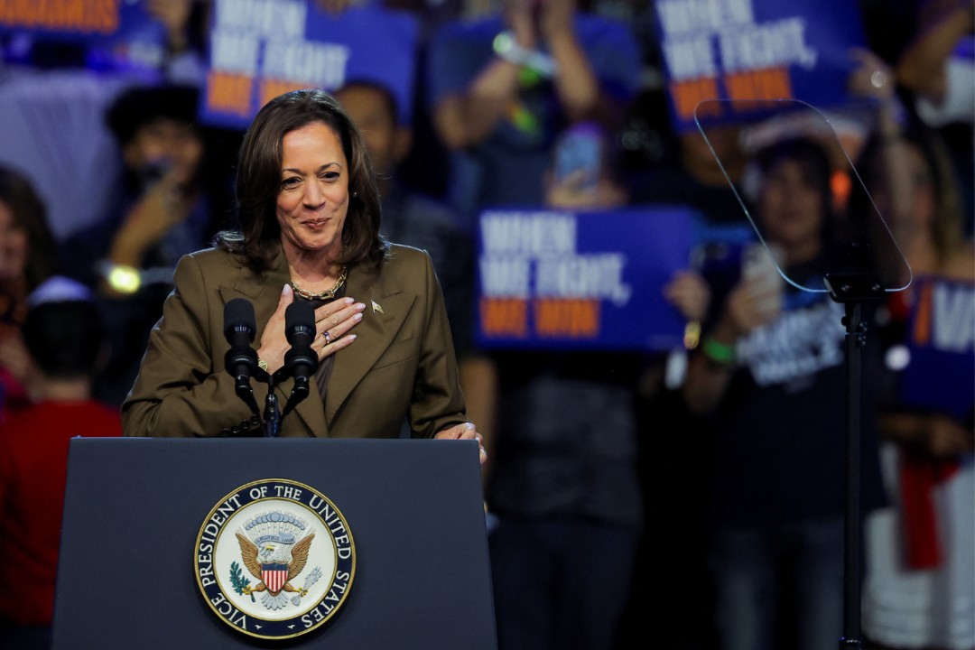 ਲਾਸ ਵੇਗਾਸ, ਨੇਵਾਡਾ, ਯੂਐਸ, 29 ਸਤੰਬਰ, 2024 ਨੂੰ ਡੈਮੋਕਰੇਟਿਕ ਰਾਸ਼ਟਰਪਤੀ ਅਹੁਦੇ ਦੀ ਉਮੀਦਵਾਰ ਅਤੇ ਯੂਐਸ ਉਪ ਰਾਸ਼ਟਰਪਤੀ ਕਮਲਾ ਹੈਰਿਸ ਇੱਕ ਮੁਹਿੰਮ ਪ੍ਰੋਗਰਾਮ ਦੌਰਾਨ ਸਟੇਜ 'ਤੇ / REUTERS/Carlos Barria/File Photo / Reuters